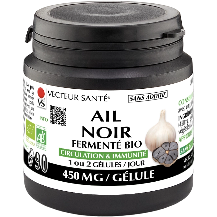 Ail Noir Fermenté Bio – complément alimentaire à base d’ail (Allium sativum) obtenu par fermentation douce. L’ail contribue à une circulation sanguine normale, aide à maintenir un taux de cholestérol normal et participe aux défenses naturelles de l’organisme. Fabriqué en France.