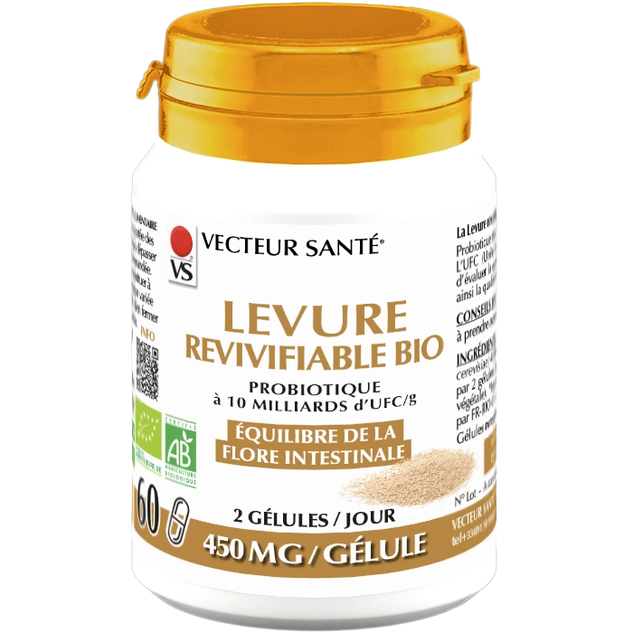 Découvrez la Levure Revivifiable de Vecteur Santé®, un complément alimentaire à base de levure de bière revivifiable qui est obtenue à partir de la souche Saccharomyces cerevisiae. Elle est ensuite séchée à basse température afin de préserver la vitalité et l’intégrité de ses cellules. Contrairement à la levure inactive, soumise à un procédé de chauffage qui rend les cellules non viables, cette forme conserve sa structure naturelle et reste vivante jusqu’à la date de durabilité minimale. Elle offre ainsi tous les bienfaits d’une levure active, tout en apportant à l’organisme ses nutriments essentiels, notamment les protéines et les vitamines du groupe B.